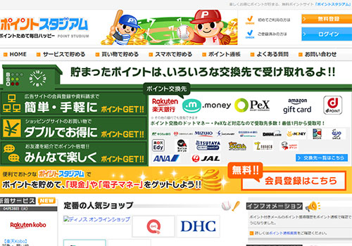 | ポイントスタジアム | 無料アカウント登録+ポイント獲得 | 100円 | ポイントサイト |