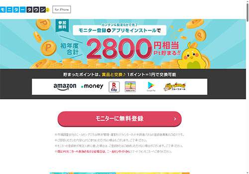 | モニタータウン | WEBより無料モニター登録 | 1000円 | ポイントサイト |