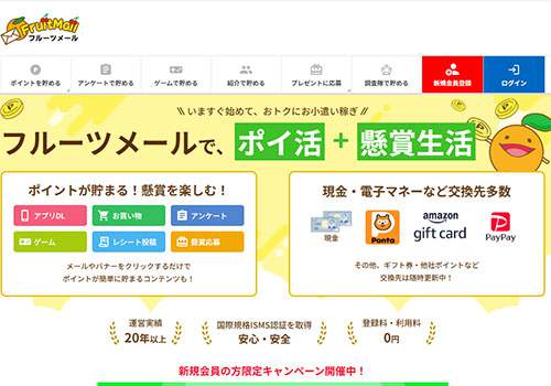 | フルーツメール | 新規会員登録+ポイント獲得 | 700円 | ポイント・懸賞サイト |