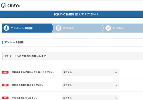 | Oh!ya(オーヤ) | 新規アンケート回答完了 | 600円→1000円 (期間限定価格) | 不動産投資情報サイト |