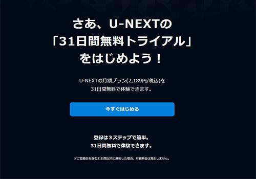 | U-NEXT | 無料トライアル申込完了 | 1665円 | 動画配信サイト |